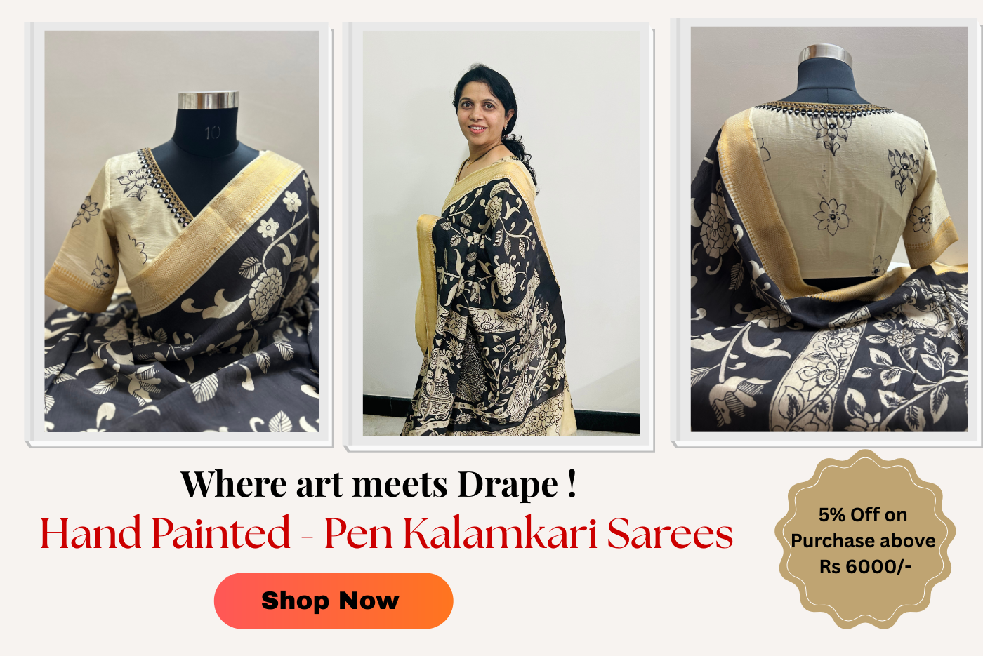 We are not resellers. At Namanaa Alankrutha, every piece is curated from scratch, from sourcing or even creating the fabric (like hand-painted Pen Kalamkari) to crafting unique patchwork blouses. We focus on originality, quality, and a detailed finish in every product.