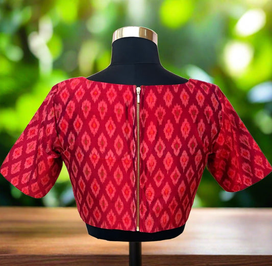 Red Pochampally Raw Silk Blouse