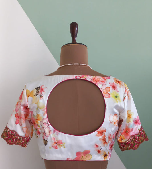 Hand Embroidered Floral Japan Satin Blouse - Made on Pre Order