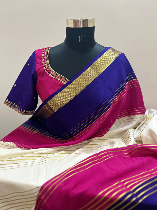 Dual color silk hand embroidered blouse - Made on Pre Order