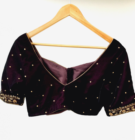 Burgundy Velvet Hand embroidered Blouse