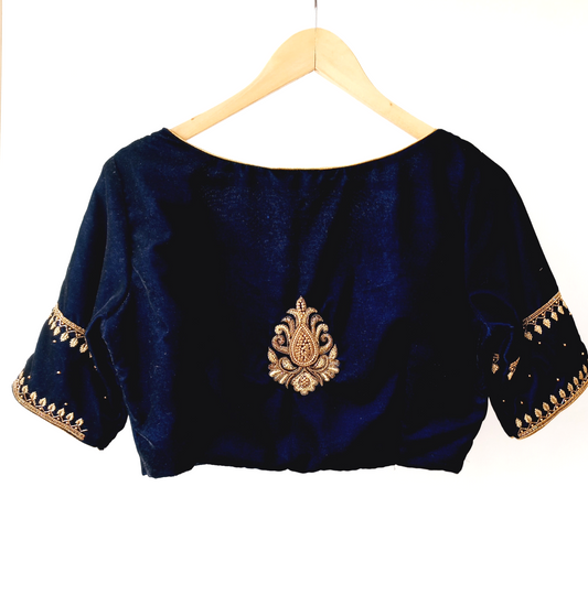 Navy Blue Velvet embroidered Blouse