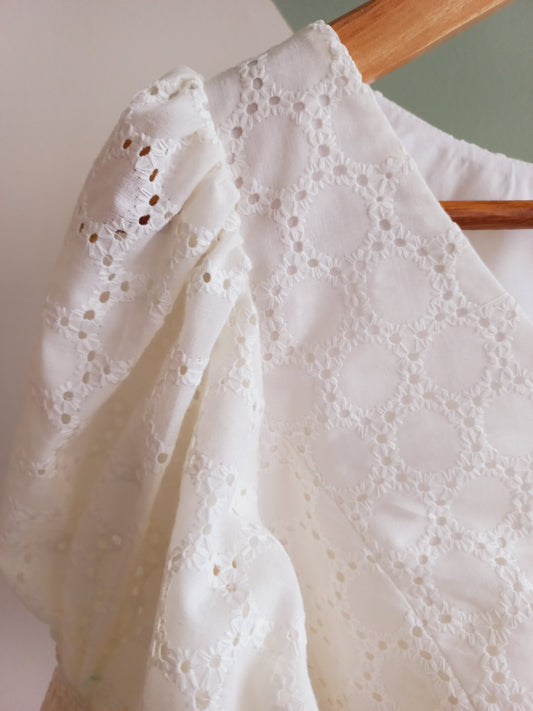 Boat Neck White Hakoba Blouse