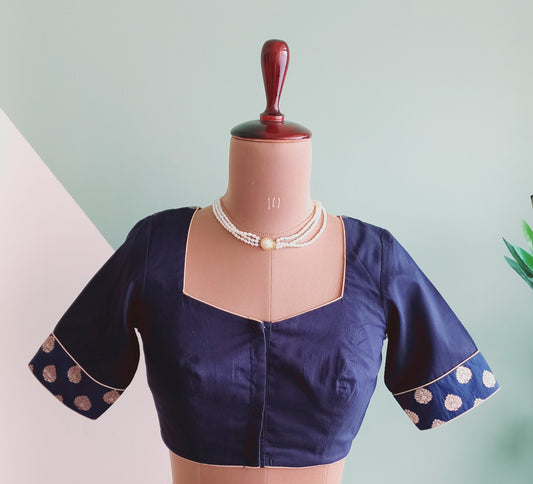 Navy blue Cotton Silk blouse with Banaras Border