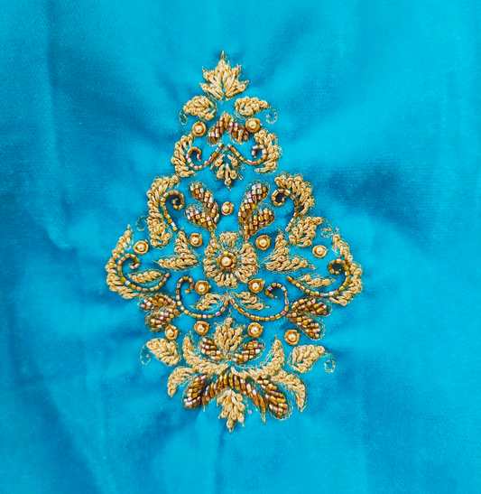 Sea Blue Velvet Hand embroidered Blouse