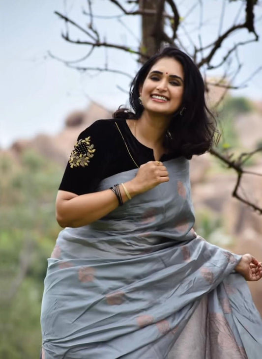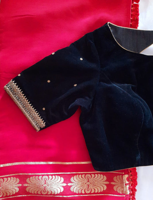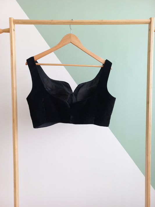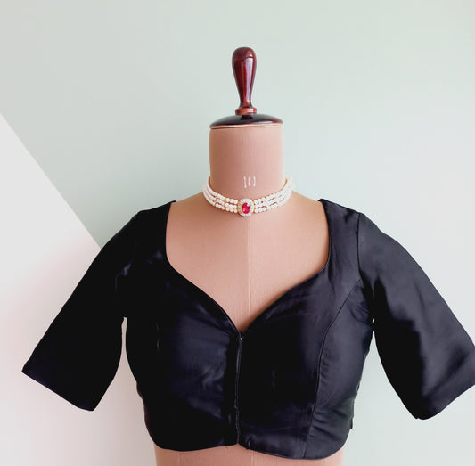 Front Over Lap Sleeveless Blouse -Black Ikkat Silk