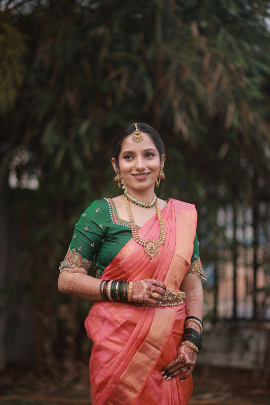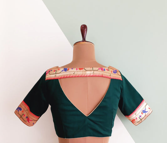 Bottle green Cotton Silk blouse with Paithani Border