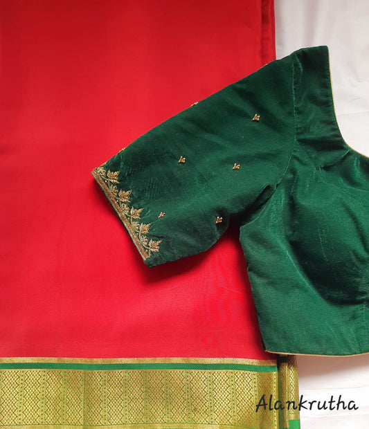 Bottle Green Pochampally Raw silk Blouse