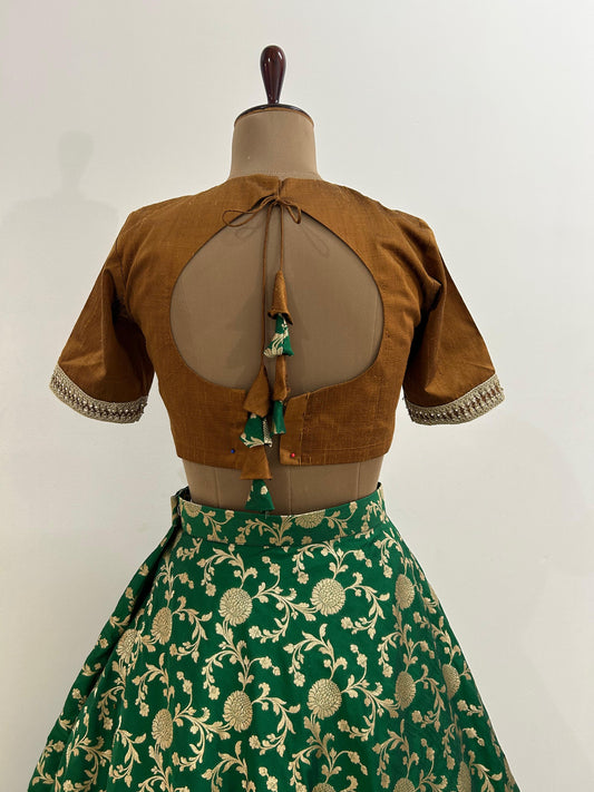 Bottle green semi brocade lehenga - Made on Pre Order