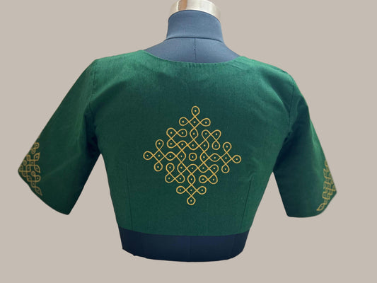 Bottle green jewelry Embroidery Blouse