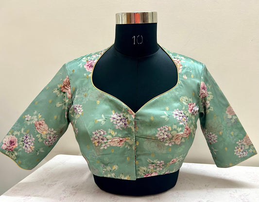 Floral Dola Silk High Neck Blouse