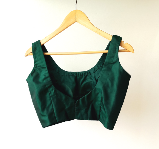 Sleeveless Bottle Green Pure Silk Blouse