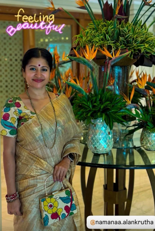 Pen Kalamkari Blouse & Clutch Combo