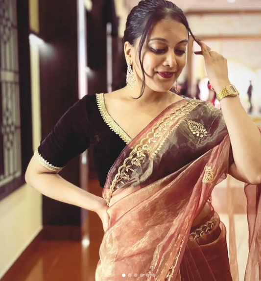 Hand Embroidered Floral Japan Satin Blouse - Made on Pre Order