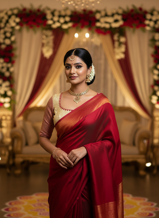 Maroon Red Silk Pichwai Hand Painted Blouse