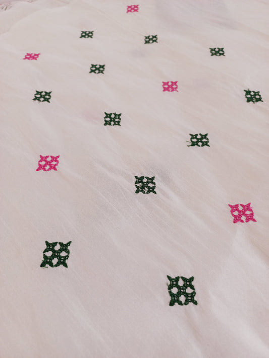 Cream Embroidered Silk Fabric- Clearance Sale