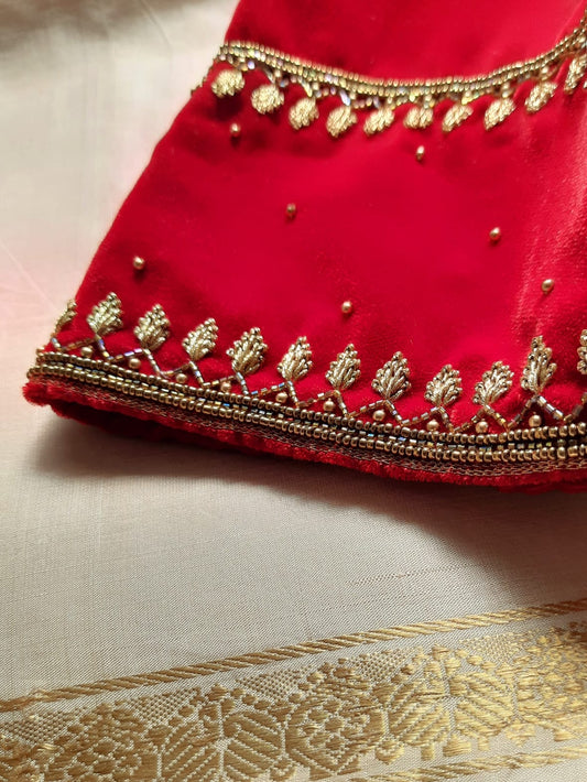 Red Velvet Hand Embroidered Blouse