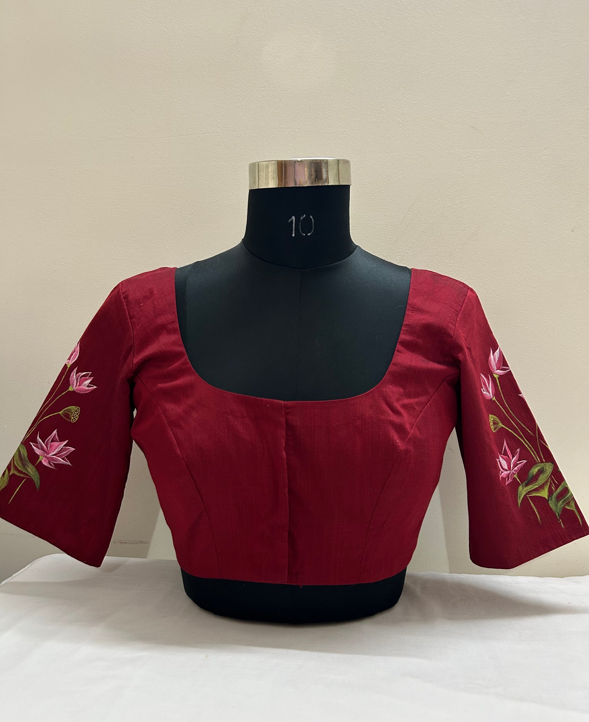 Maroon Red Silk Pichwai Hand Painted Blouse