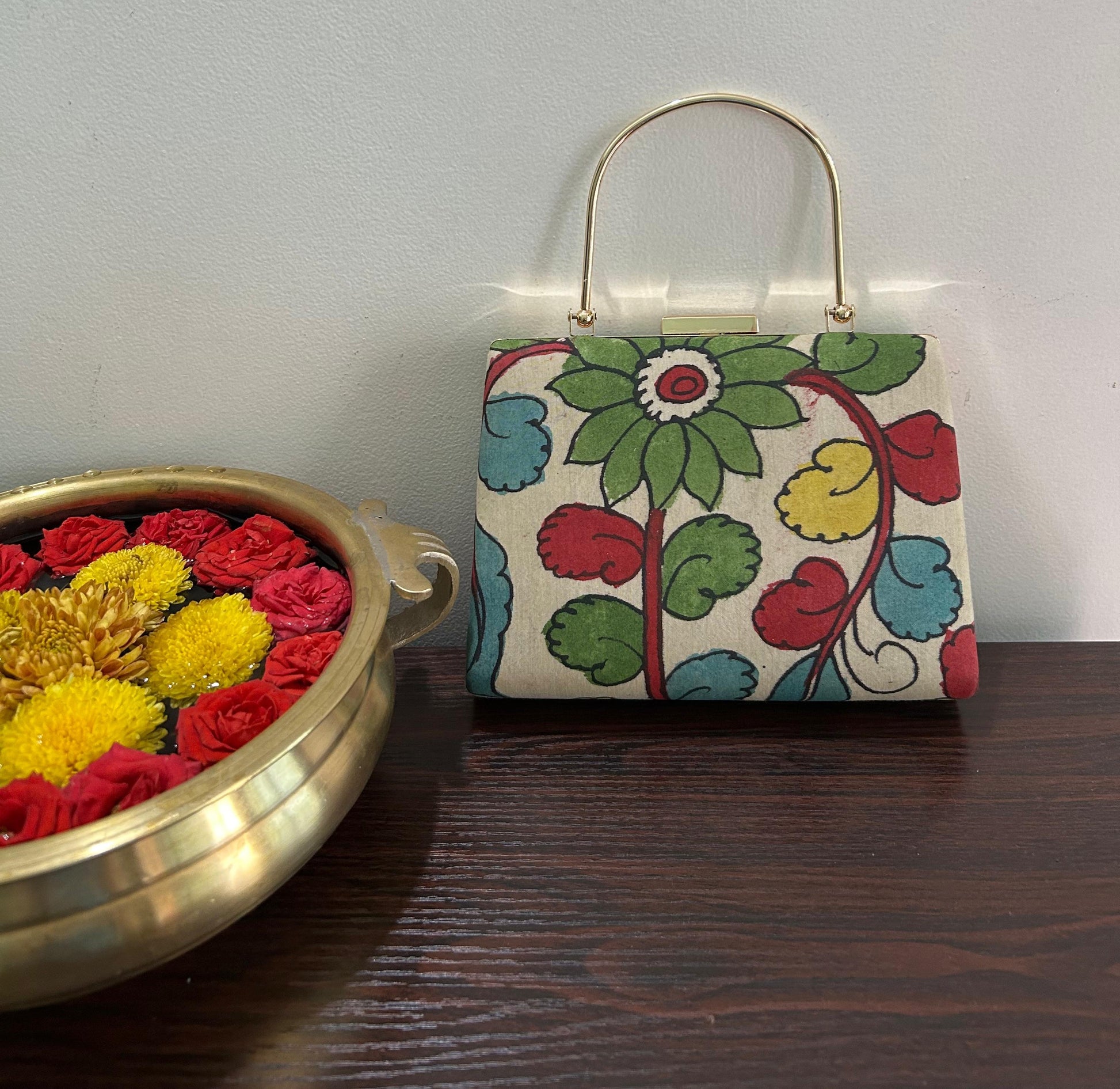Each clutch is handcrafted with custom Bangalore silk prints from Kalahasthi, giving it a unique, one-of-a-kind design. Perfect for both casual and traditional events, this clutch is a statement of style and culture.