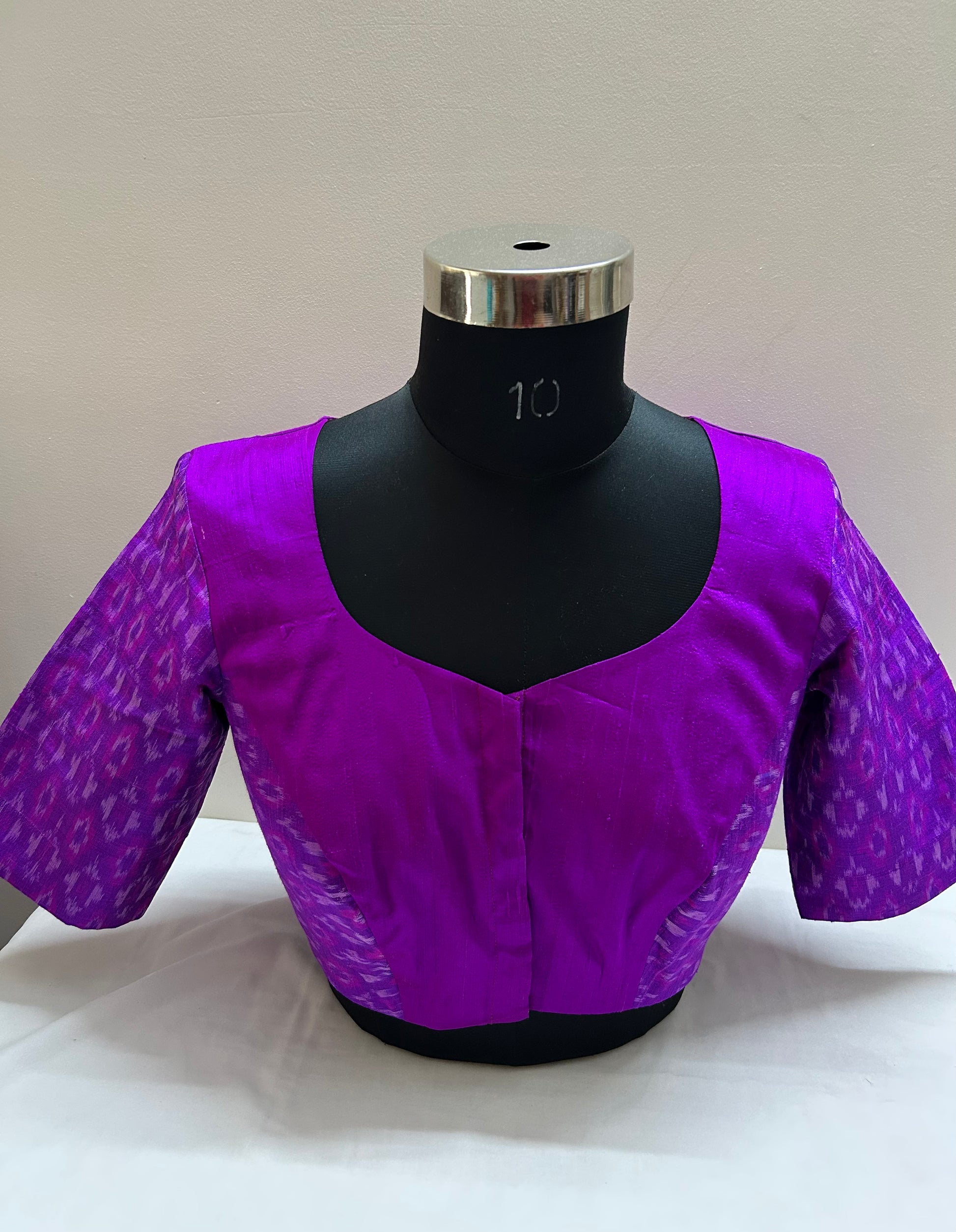Presenting Purple Pochampally Rawsilk Blouse, that combines contrasting textures for visual interest.
